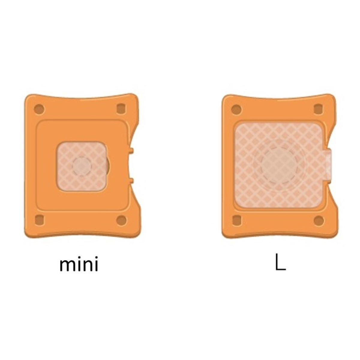 Lサイズはツボ全体にしっかりと、miniサイズは目立たせたくない部位にピッタリの大きさです。