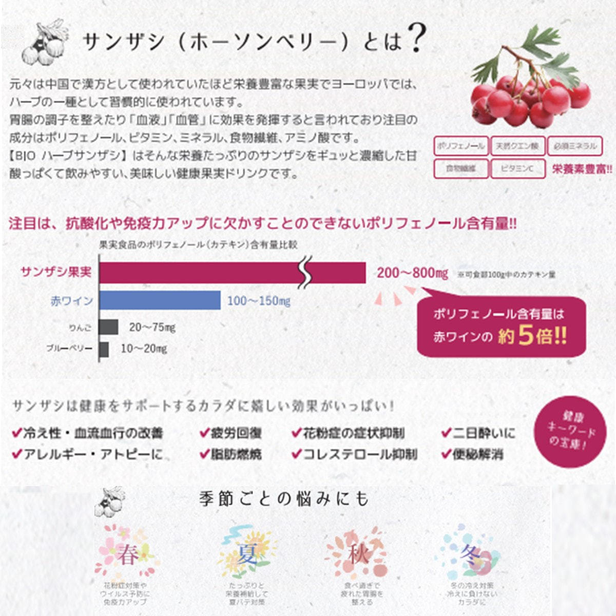 サンザシには健康をサポートするカラダに嬉しい効果がたくさん詰まっています。
