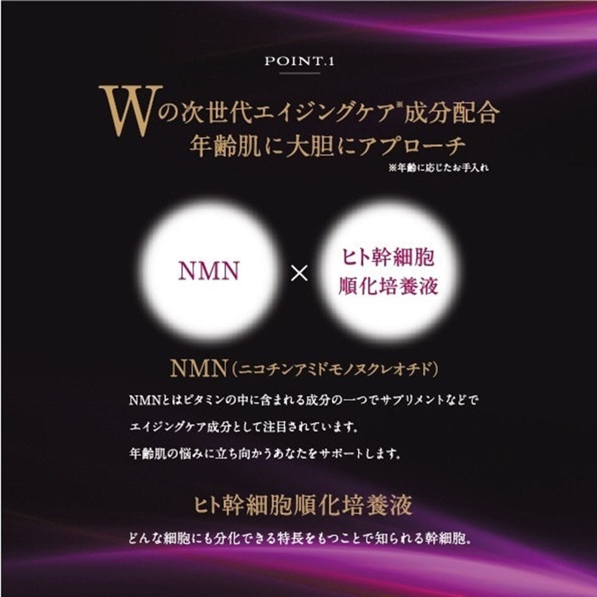 水、プロパンジオール、グリセリン、BG、(PEG-240/デシルテトラデセスー20/HDI)コポリマー、キシリチルグルコシド、PEG/PPG/ボリブチレングリコールー8/5/3グリセリン、加水分解カイメン、ニコチンアミドモノヌクレチオチド、ヒト幹細胞順化培養液、プラセンタエキス、ツボクサ葉/茎エキス、ヒアルロン酸Na、3ーグリセリルアスコルビン酸、フラーレン、アスペルギルス培養物、スクワラン、キシリトール、無水キシリトール、メントール、1,2ーへキサンジオール、水添レシチン、ポリソルベート80、カプリリルグリコール、酢酸トコフェロール、PVP、トリ(カプリル酸/カプリン酸)グリセリル、ポリシリコーンー34、イソノナン酸イソノニル、フェノキシエタノール、エチルヘキシルグリセリン、メチルパラベン、プロピルパラベン、香料